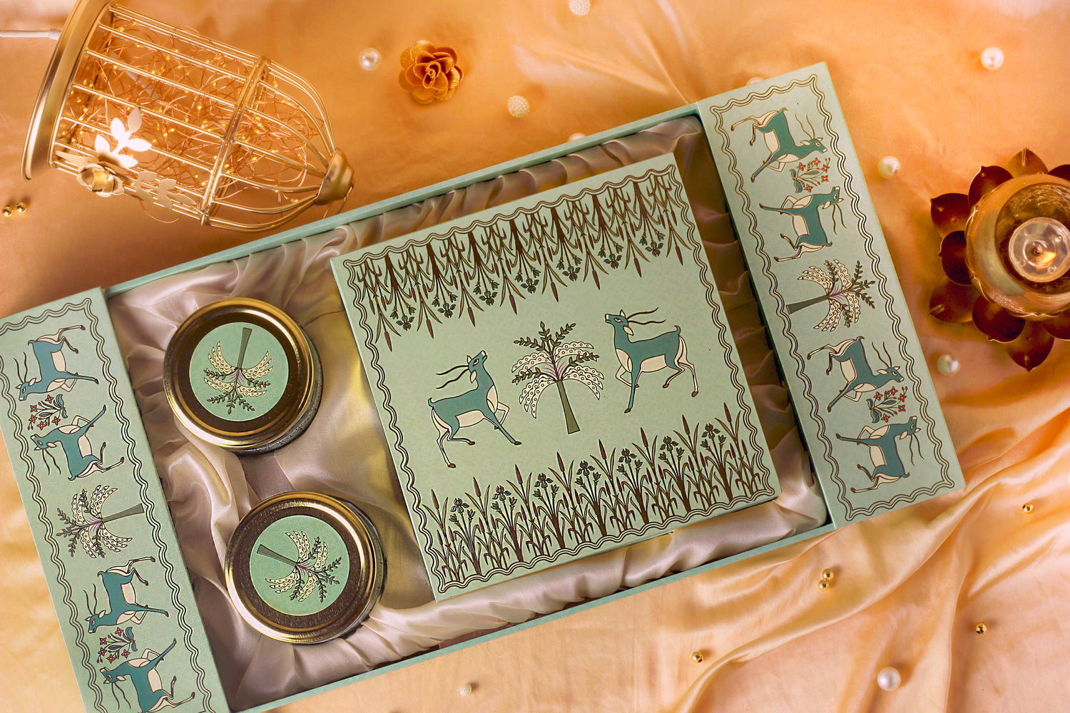4 Jar & 12 Cavity Embroidery Box (Off-White)