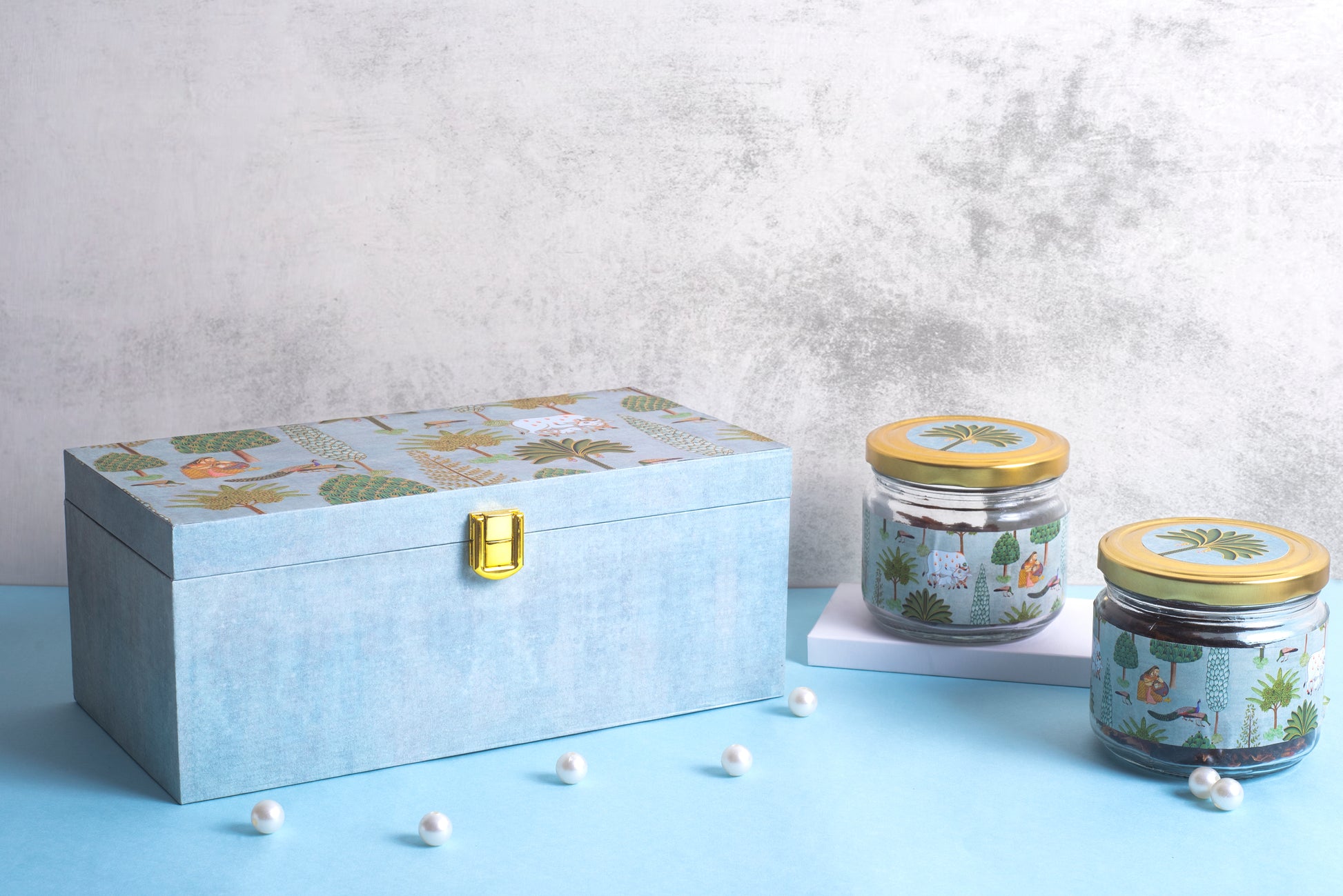 Pichwai Gift Box with 2 Jar (Blue)