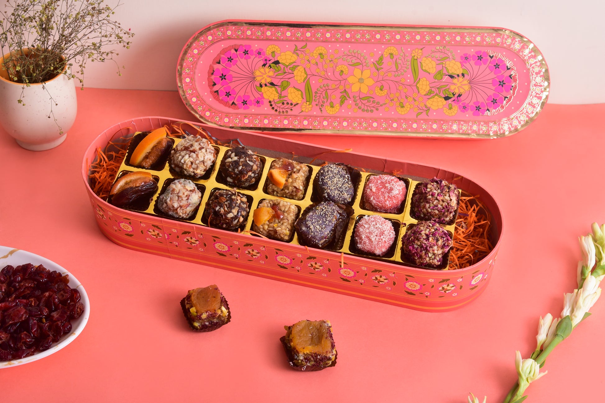 Celebrate the art of thoughtful gifting with our Oval Phool Baag Box with 14 Cavity compartments. A vibrant blend of tradition, elegance, and functionality. Featuring 14 perfectly crafted compartments, this box is ideal for presenting an assortment of sweets, chocolates, dry fruits, or festive treats. The Phool Baag-inspired floral design adds a refreshing burst of color and charm, making it perfect for weddings, festivals, and special occasions. Elegant, reusable, and beautifully detailed, this box turns every gift into a blooming celebration.